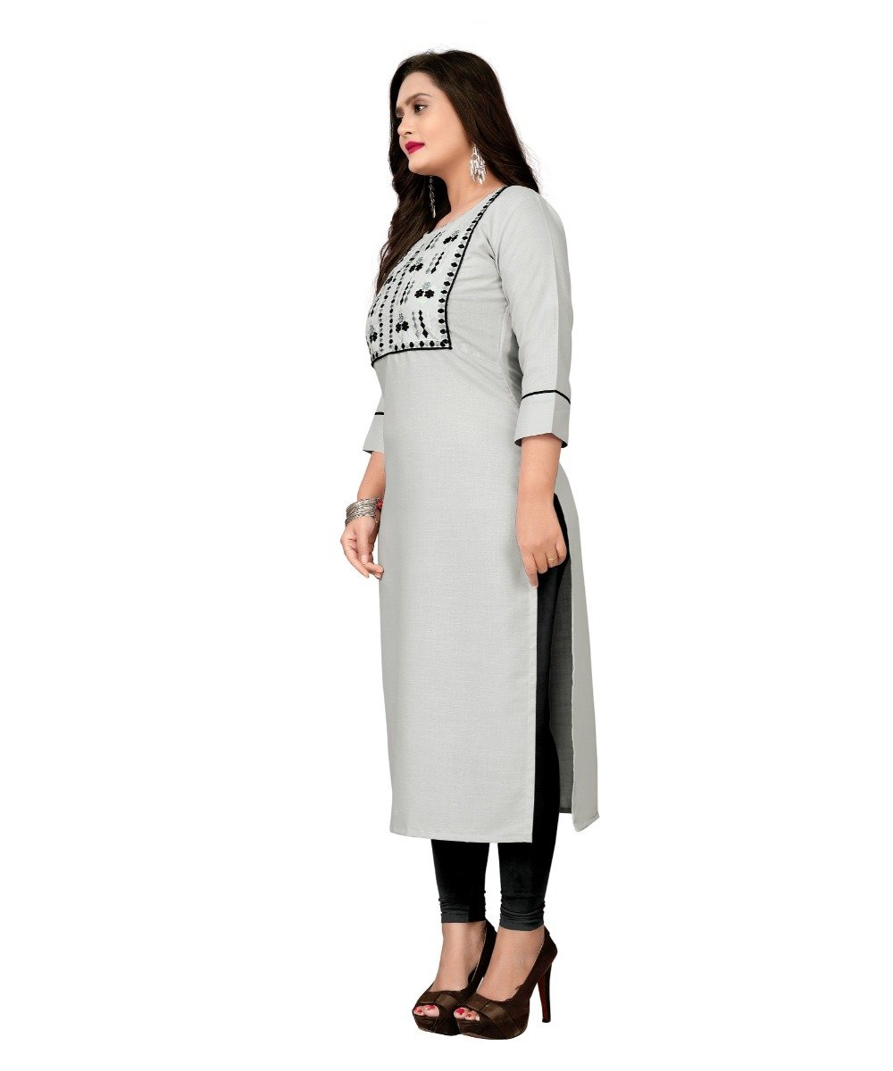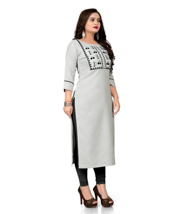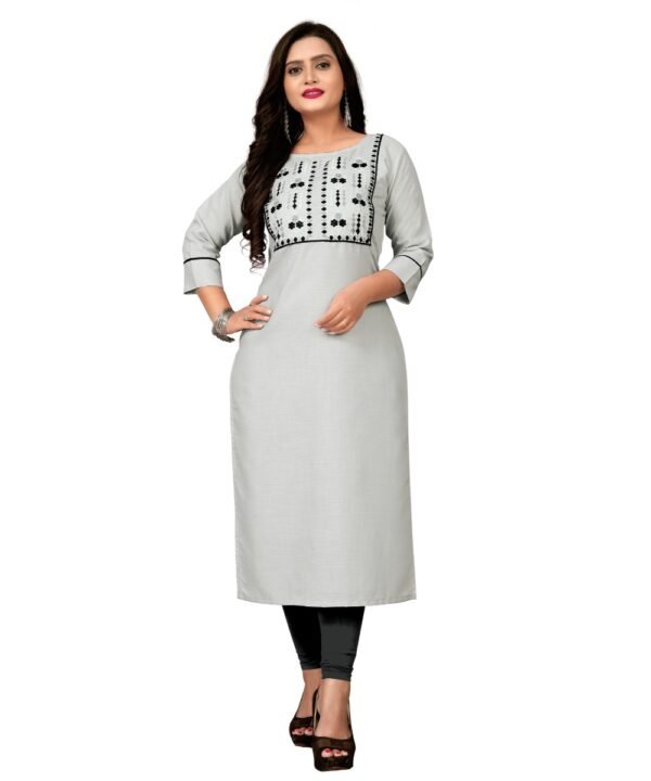Generic Women’s Cotton Embroidery Straight Kurti (Cream)