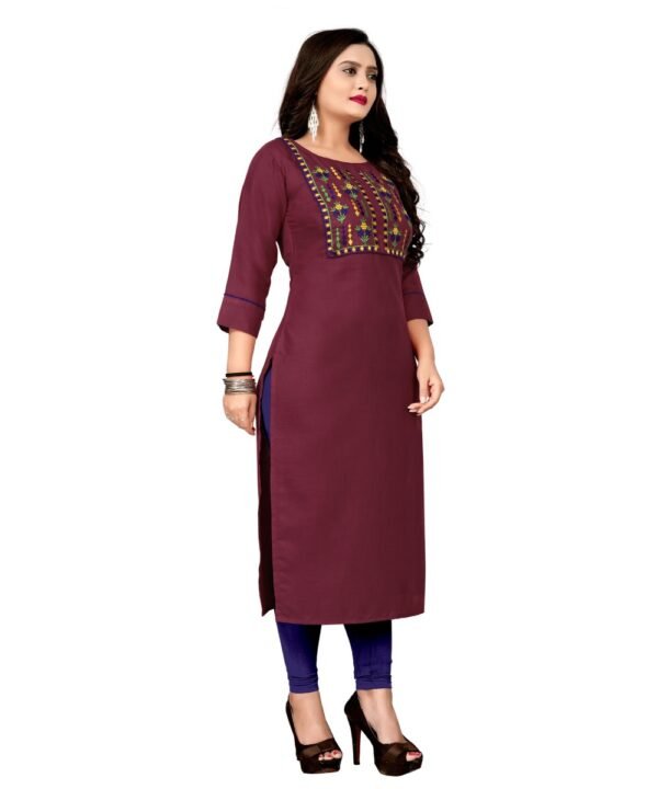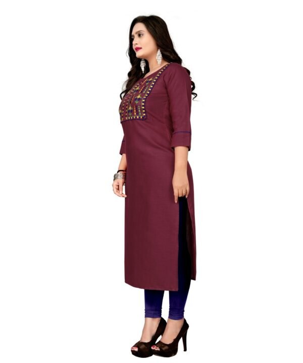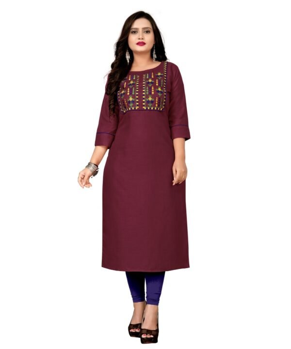 Generic Women’s Cotton Embroidery Straight Kurti (Maroon)