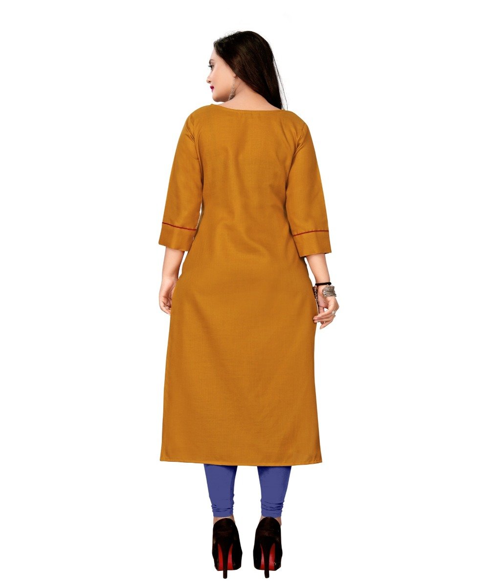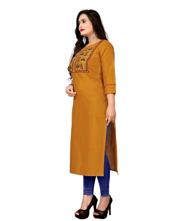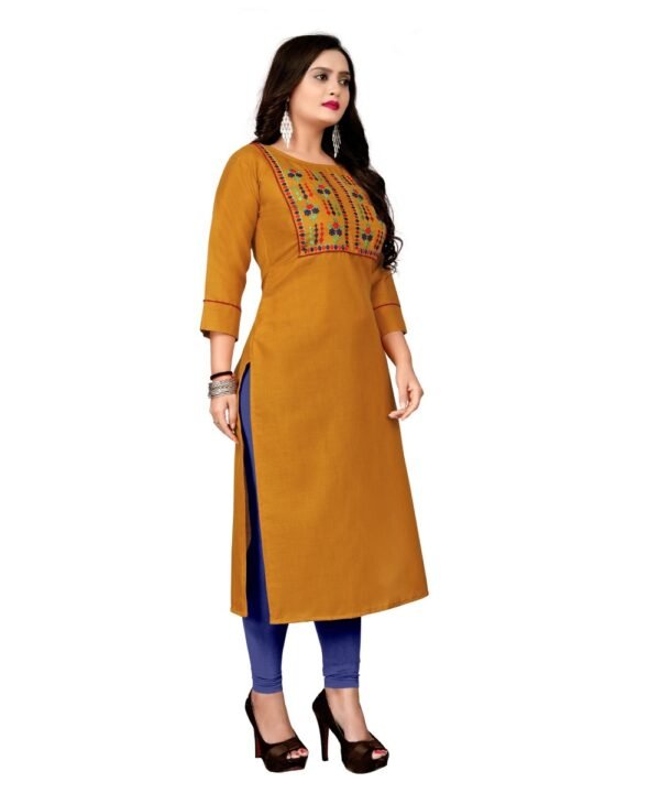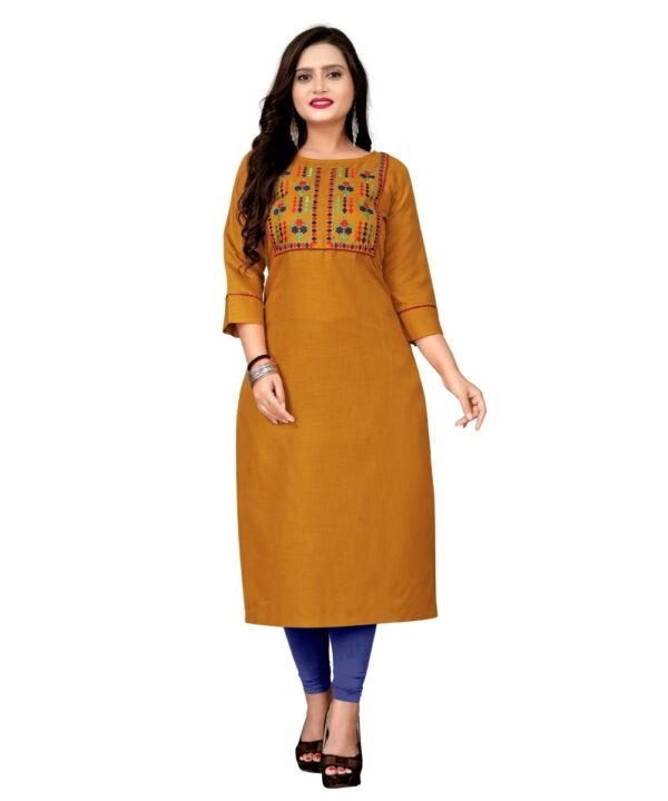 Generic Women’s Cotton Embroidery Straight Kurti (Mustard Yellow)