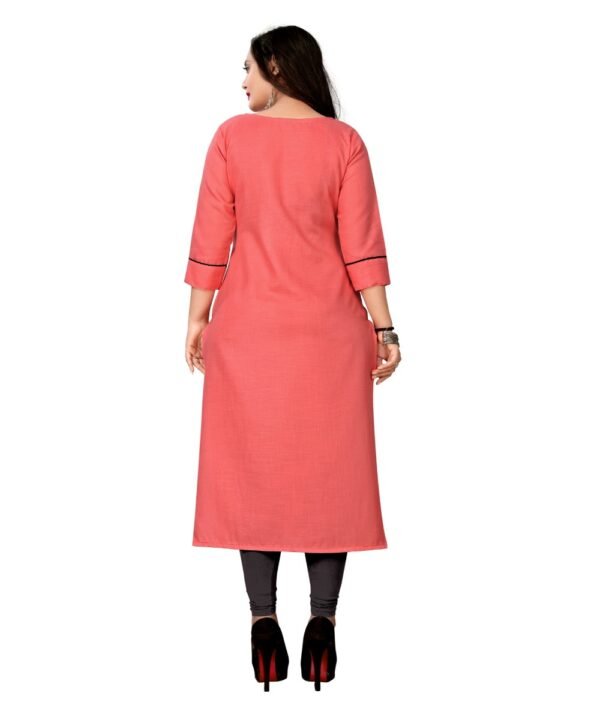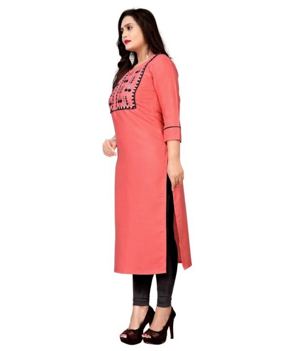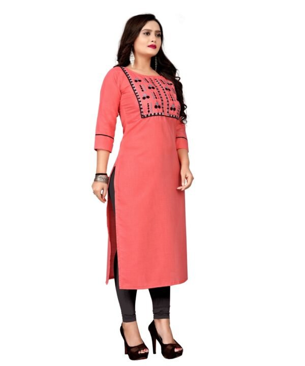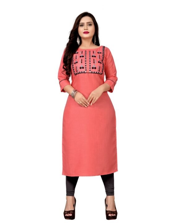 Generic Women’s Cotton Embroidery Straight Kurti (Peach)