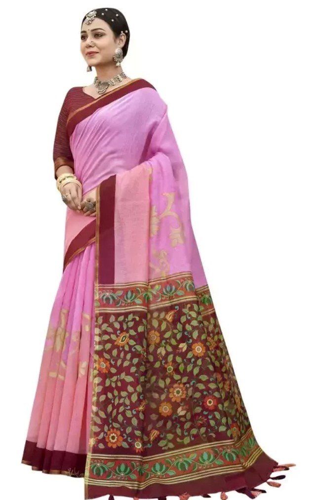 Generic Women’s Cotton Floral Pattern Foil Printed Saree With Blouse (Pink, 5-6 Mtrs)