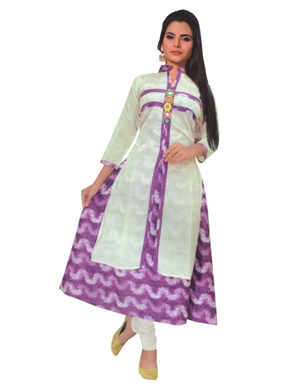 Generic Women’s Cotton Kurtis (Violet, Multi, M)