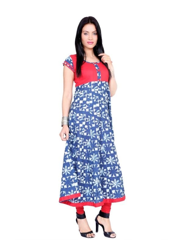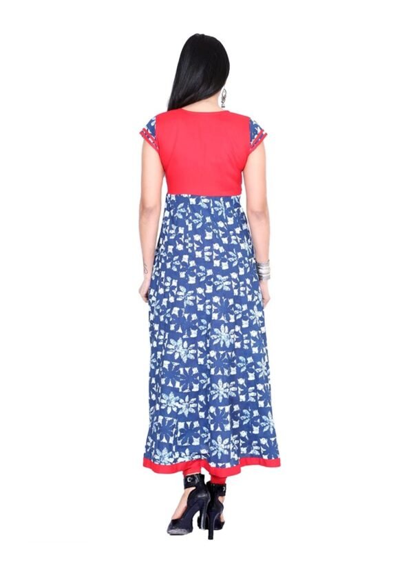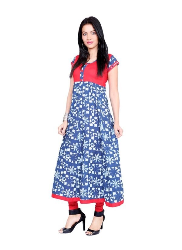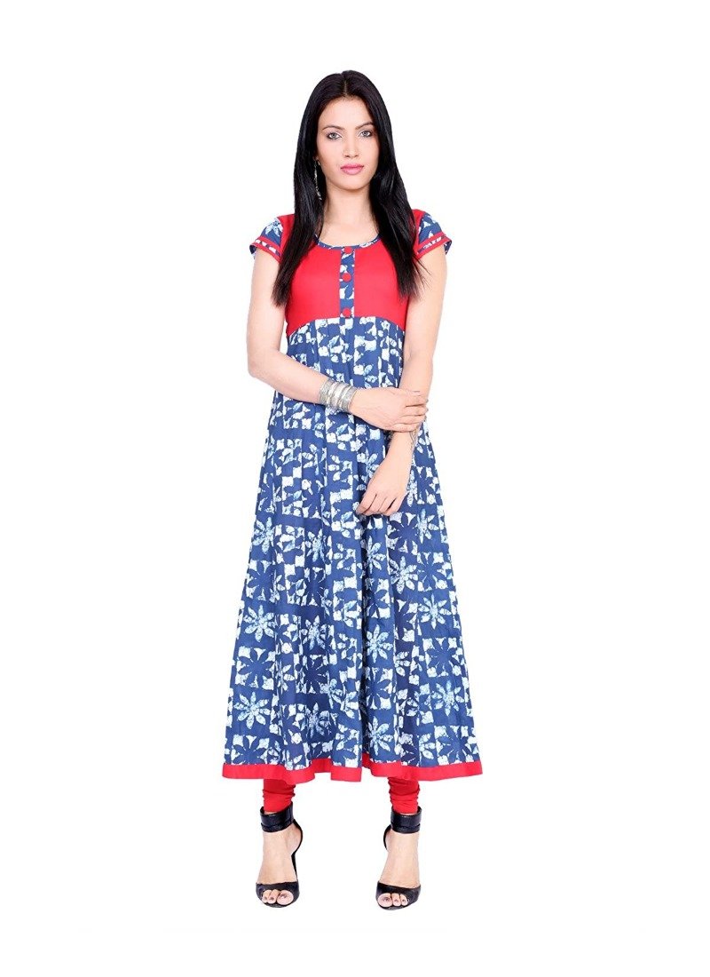 Generic Women’s Cotton Printed Long Kurti (Blue, Cotton)