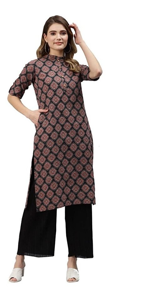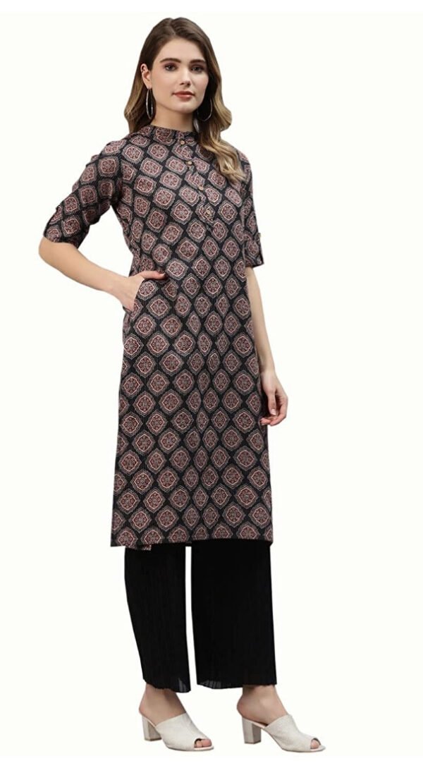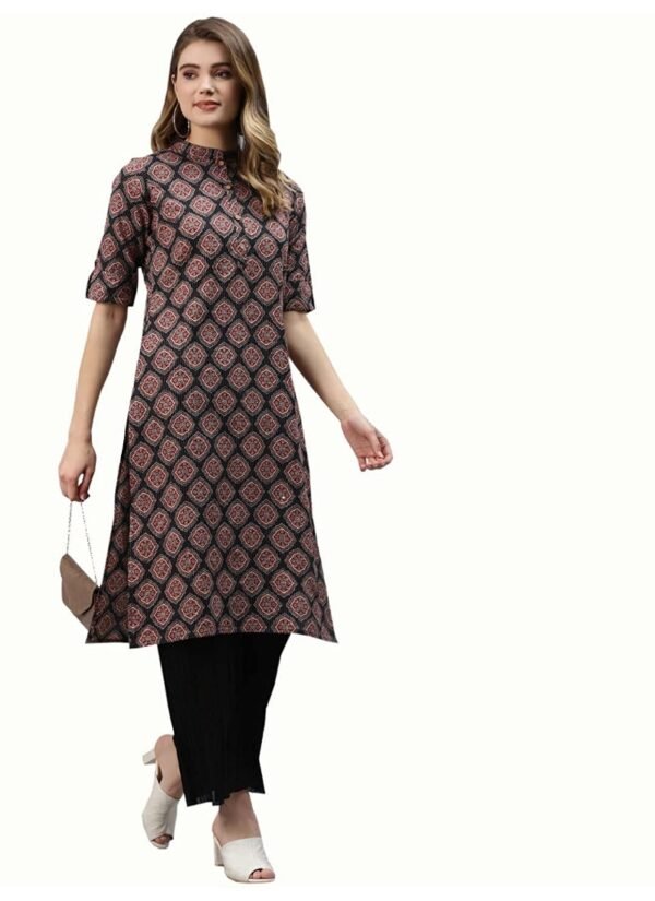 Generic Women’s Cotton Printed Straight Kurti (Black, Cotton)