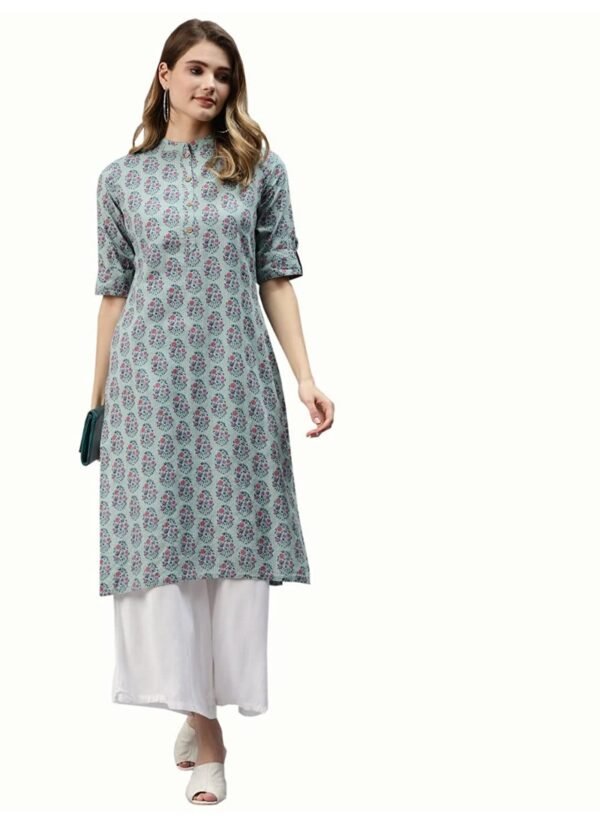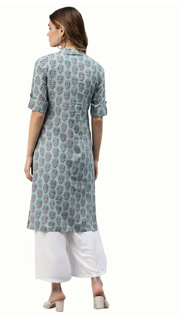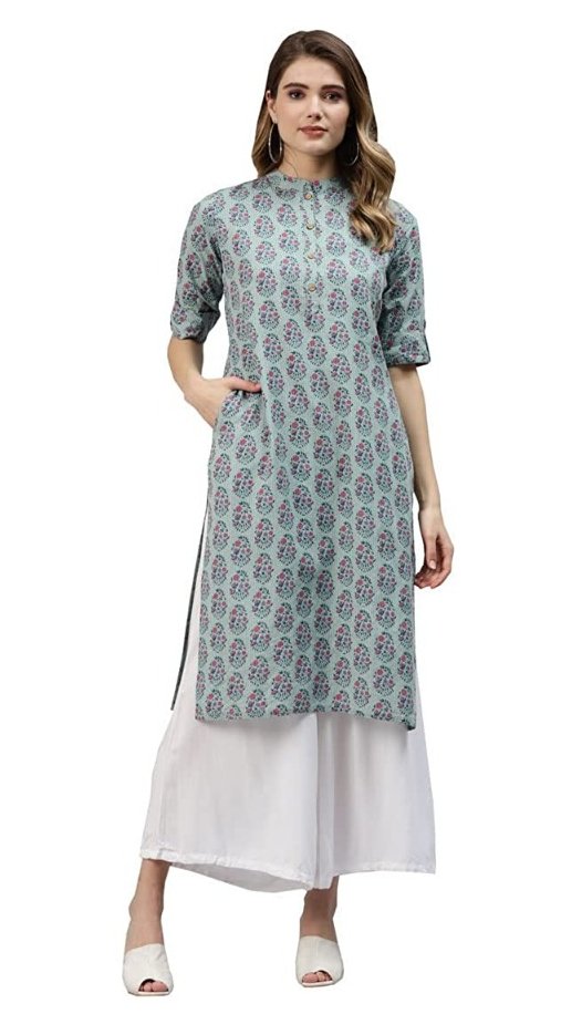 Generic Women’s Cotton Printed Straight Kurti (Blue, Cotton)