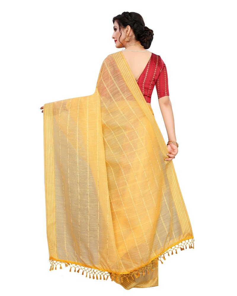 Generic Women’s Cotton Saree With Blouse (Yellow, 5-6Mtrs)