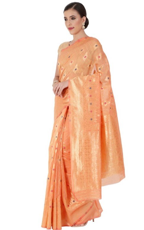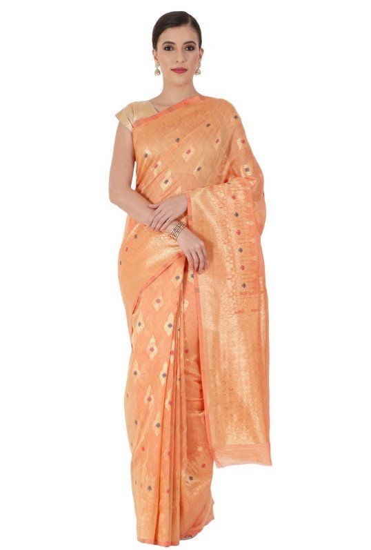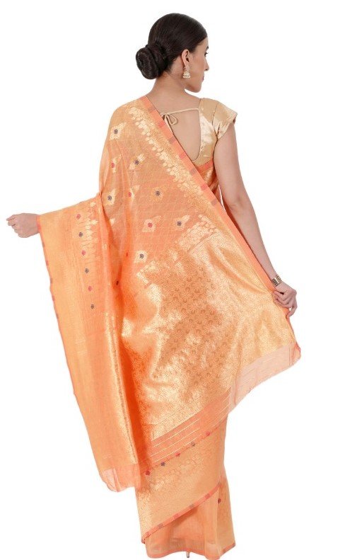 Women’s Cotton Sarees (Orange , 5-6Mtrs)