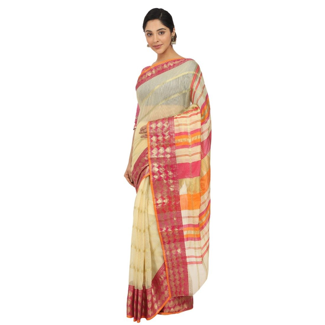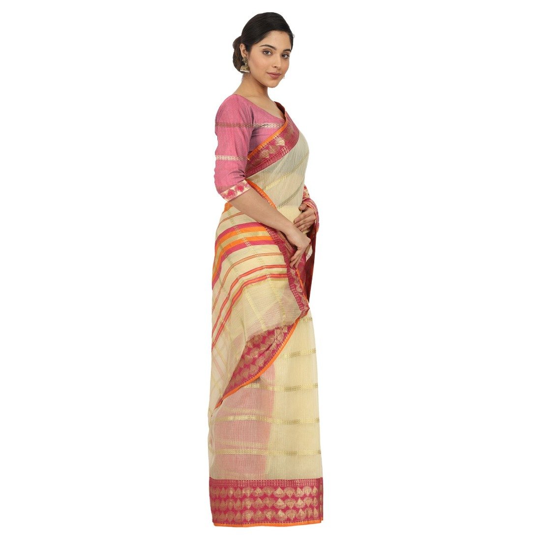 Generic Women’s Cotton Silk Saree With Blouse (Light Yellow, 5-6 Mtrs)