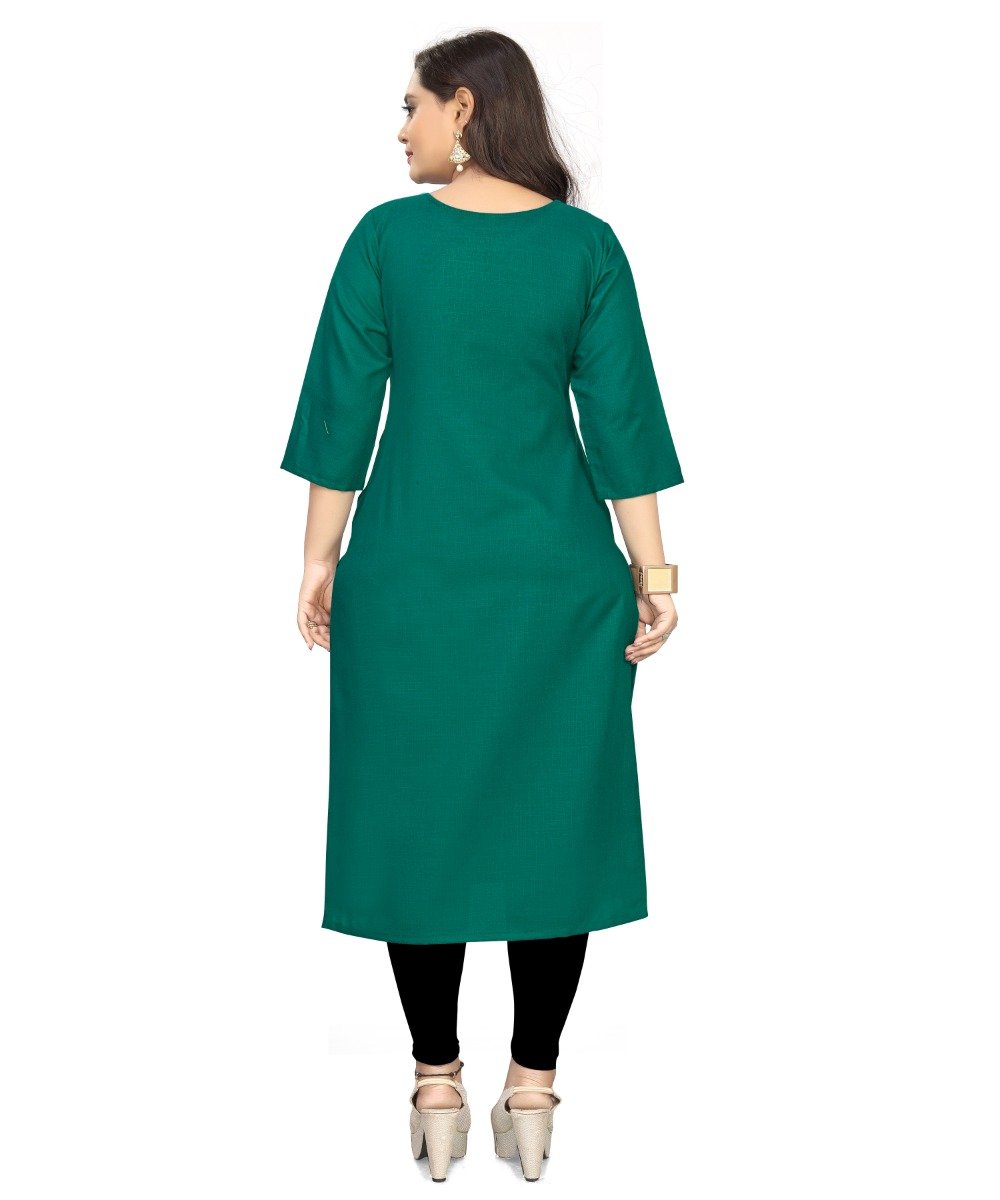 Generic Women’s Cotton Soild A-Line Kurti (Green)
