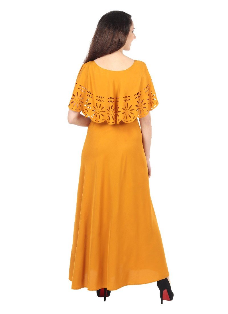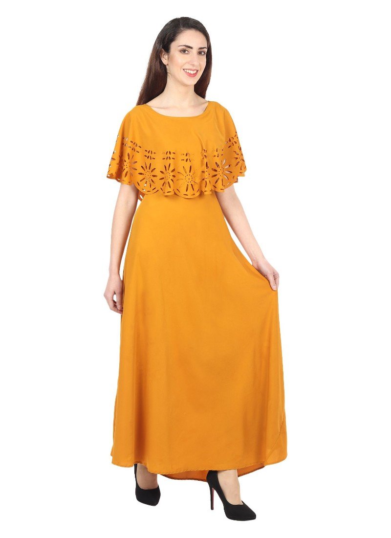 Generic Women’s Crepe Solid Sleeveless Full Length Gown(Yellow)