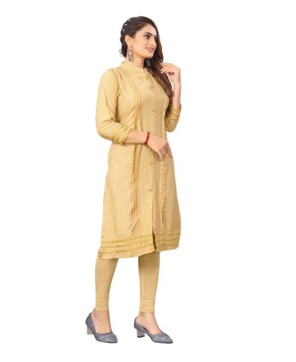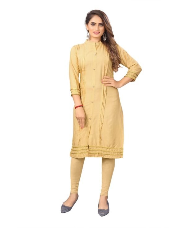 Generic Women’s Digial Print Rayon Regular 3/4th Sleeve Knee Length Kurti (Beige)