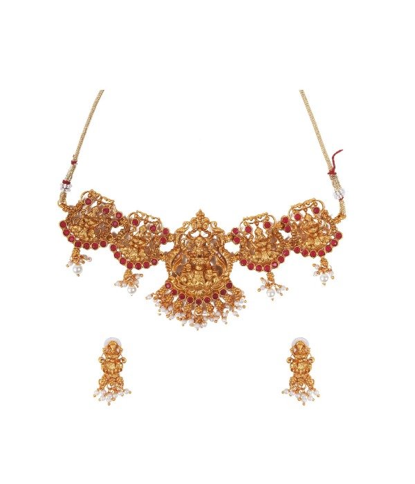 Generic Women’s Elegent Temple Jewellery Set (Maroon, Free Size)