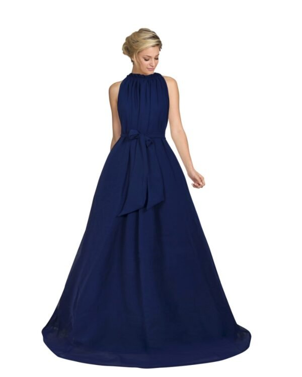 Generic Women’s Georgette Western Wear Flare Long Gown (Blue)