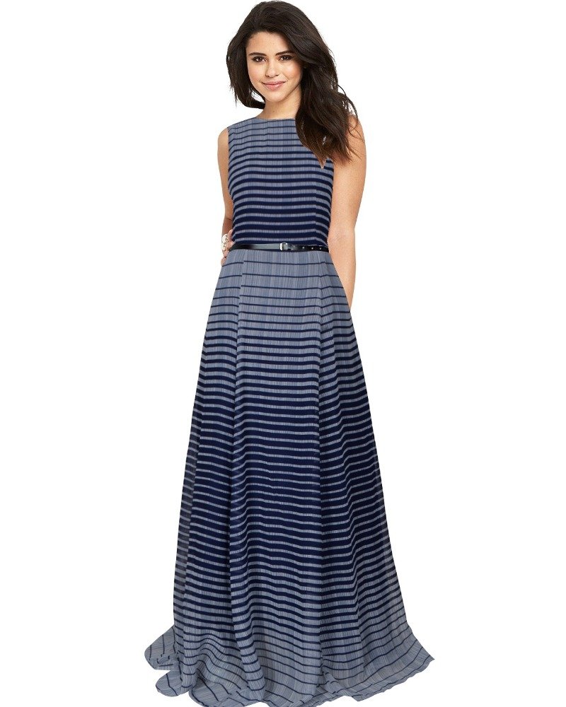 Generic Women’s Georgette Western Wear Flare Long Gown (Blue)
