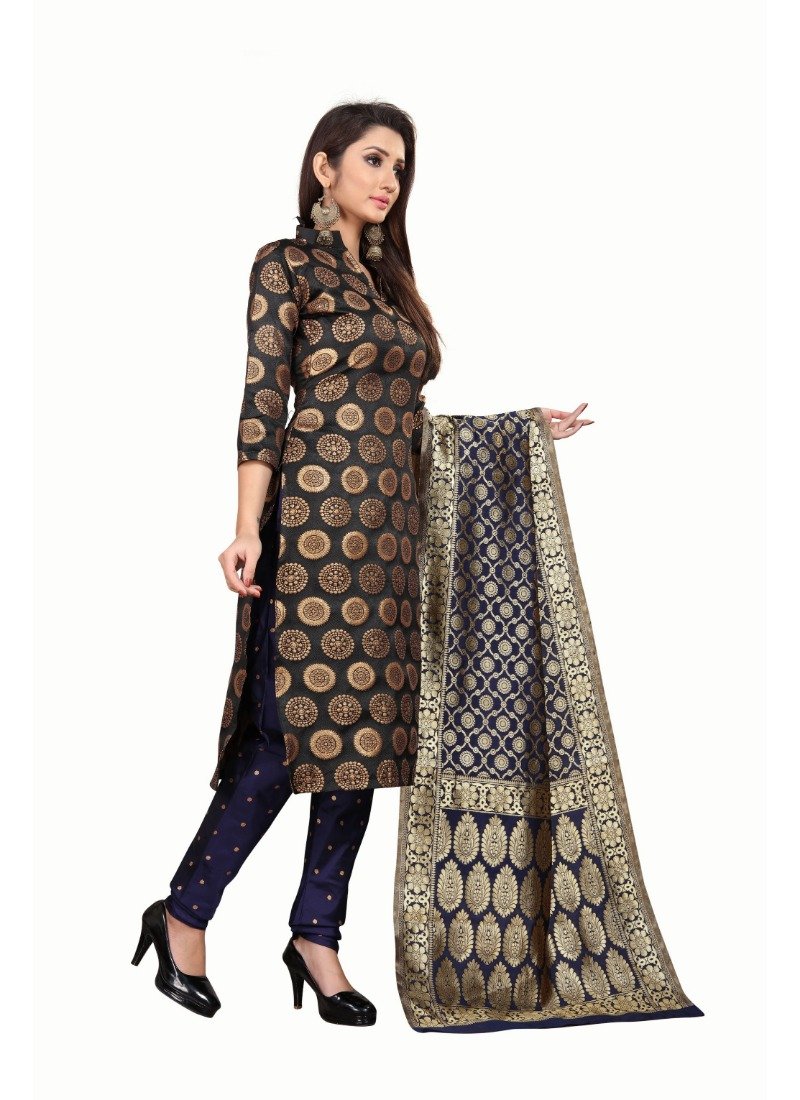 Women’s Jacquard Silk Unstitched Salwar-Suit Material With Dupatta (Black,2-2.5Mtrs)