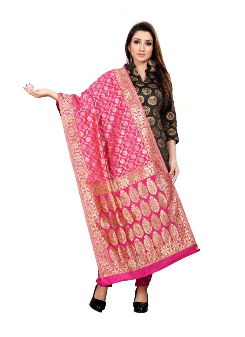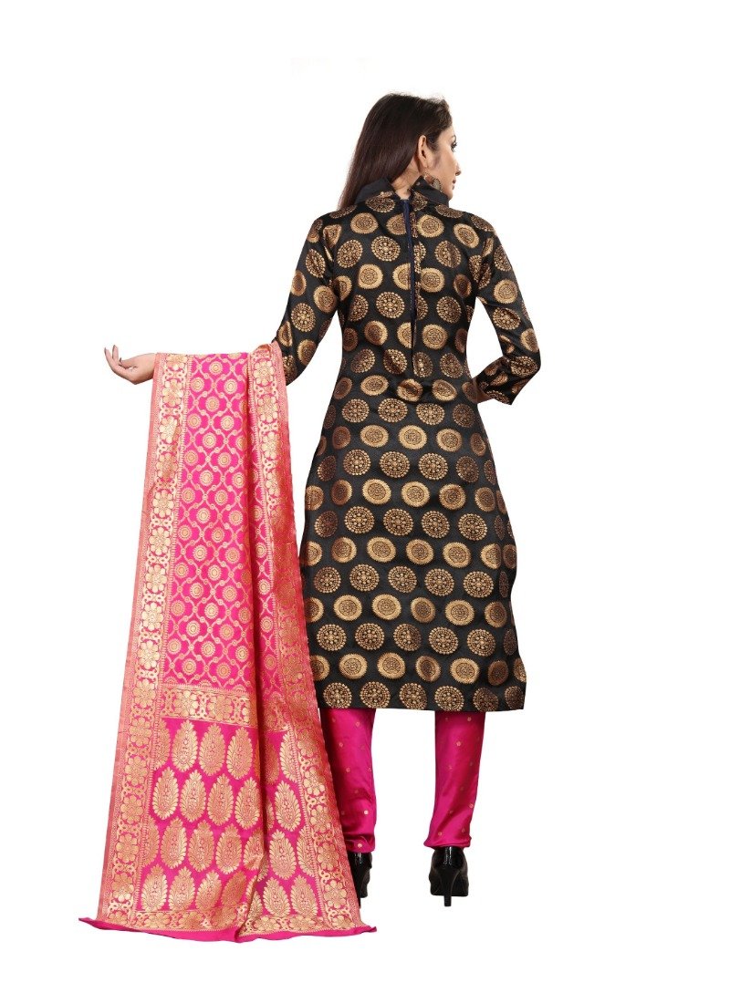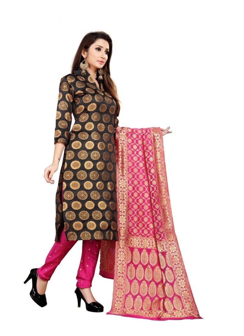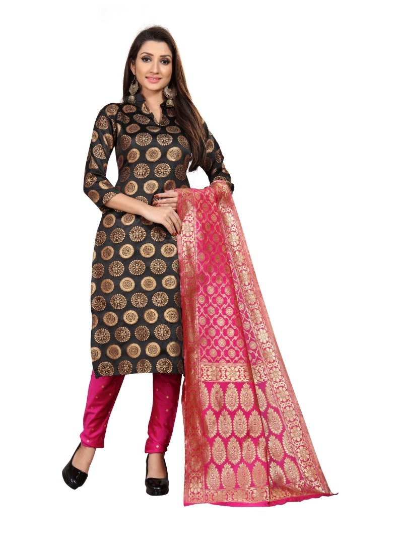 Women’s Jacquard Silk Unstitched Salwar-Suit Material With Dupatta (Black,2-2.5Mtrs)