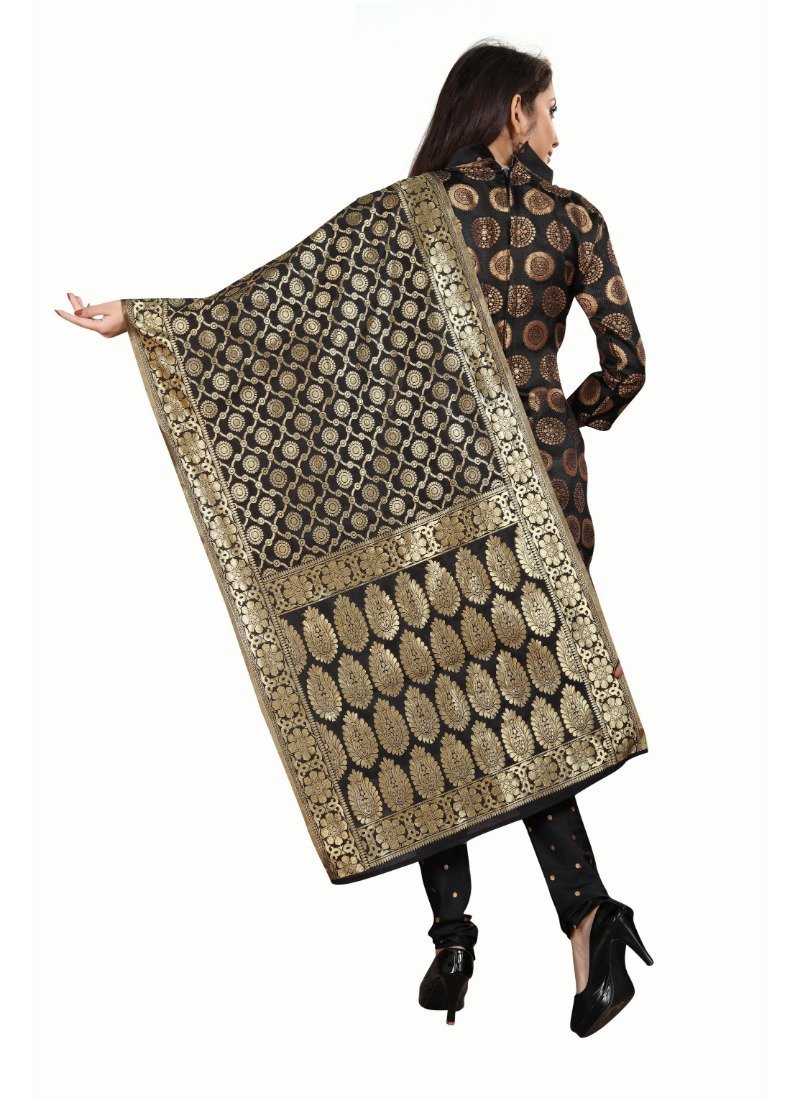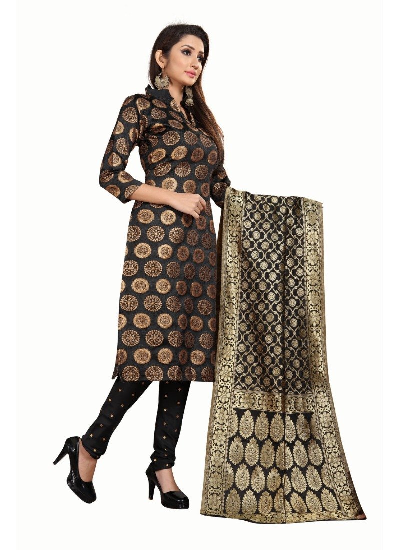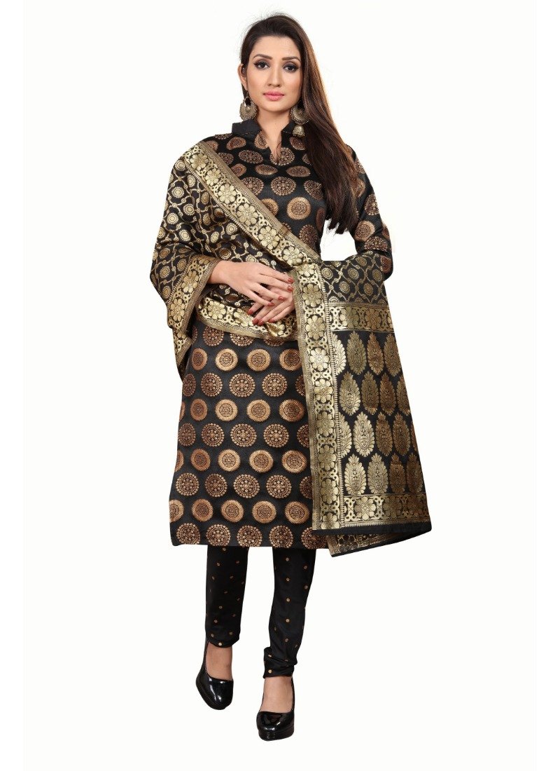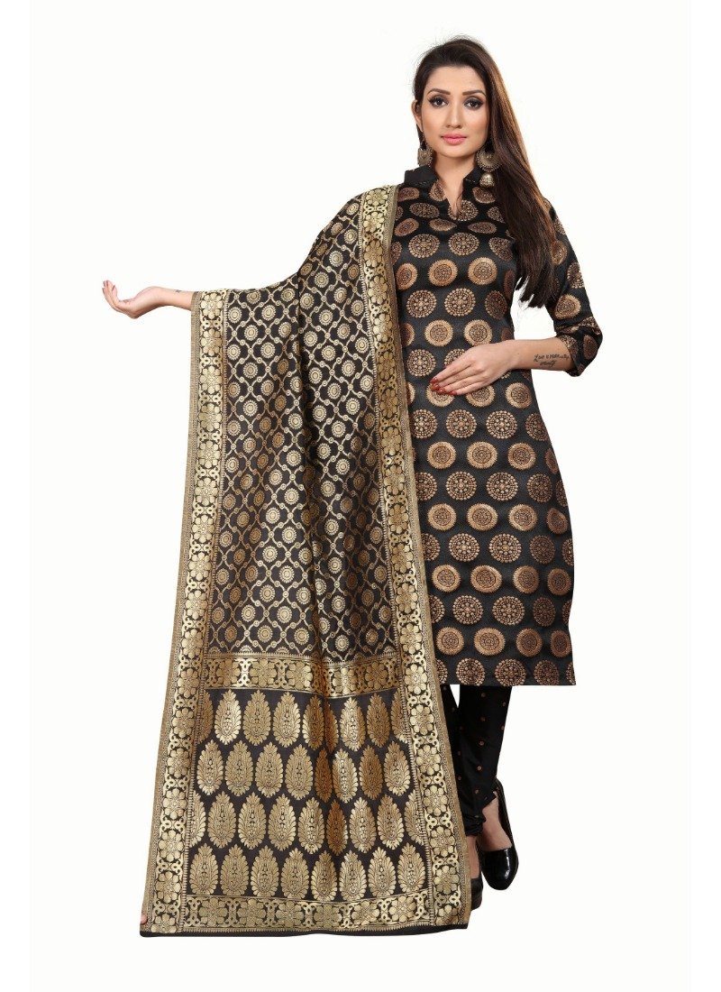 Women’s Jacquard Silk Unstitched Salwar-Suit Material With Dupatta (Black,2-2.5Mtrs)