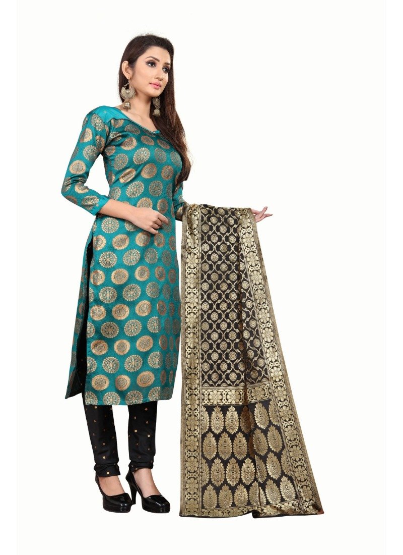 Generic Women’s Jacquard Silk Unstitched Salwar-Suit Material With Dupatta (Green,2-2.5Mtrs)