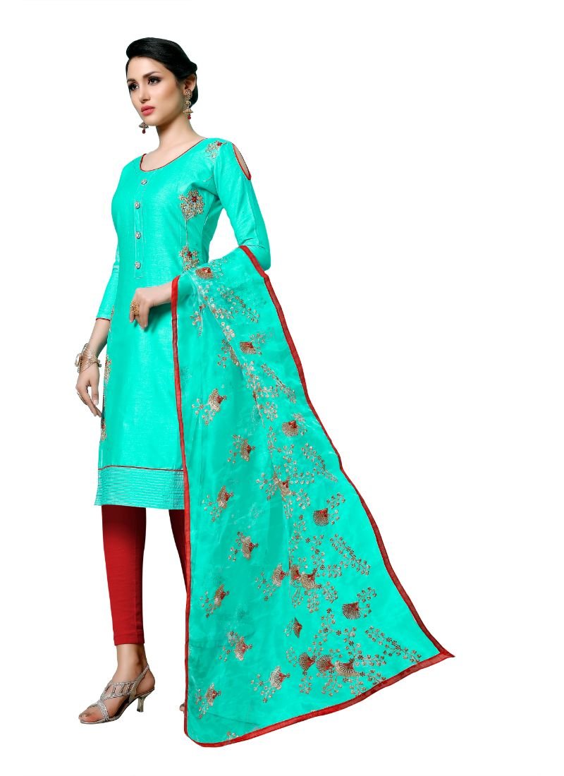 Generic Women’s Jam Cotton Unstitched Salwar-Suit Material With Dupatta (Turquoise, 2-2.5mtrs).