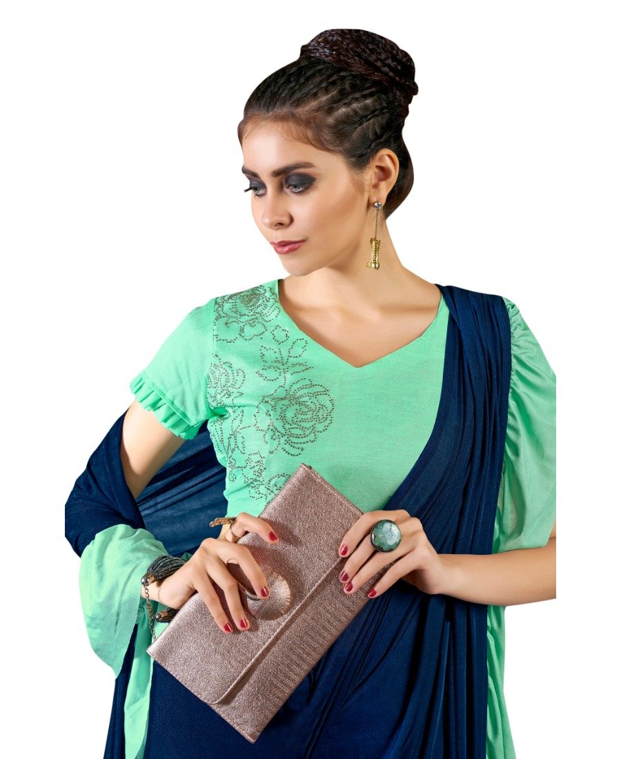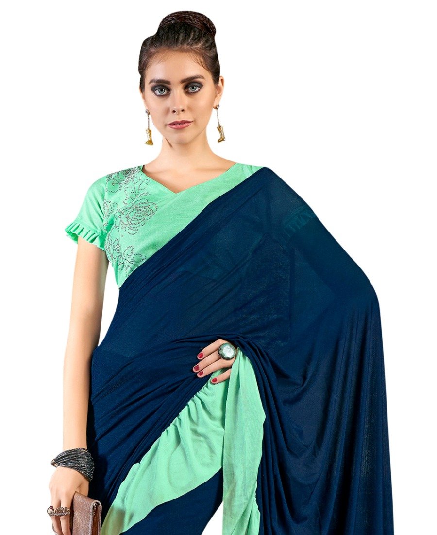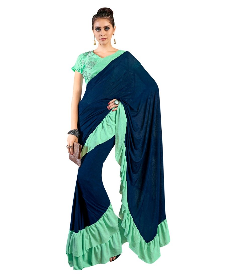 Generic Women’s Lycra Saree With Blouse (Blue, 5-6Mtrs)