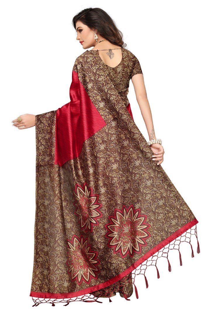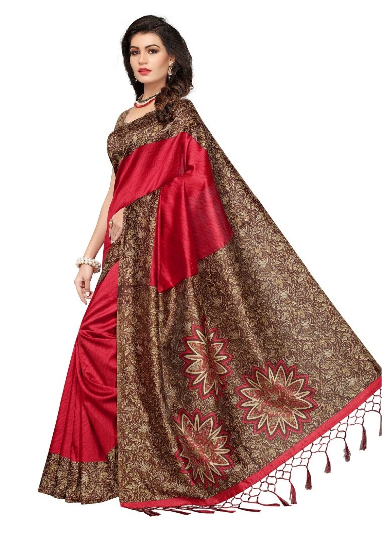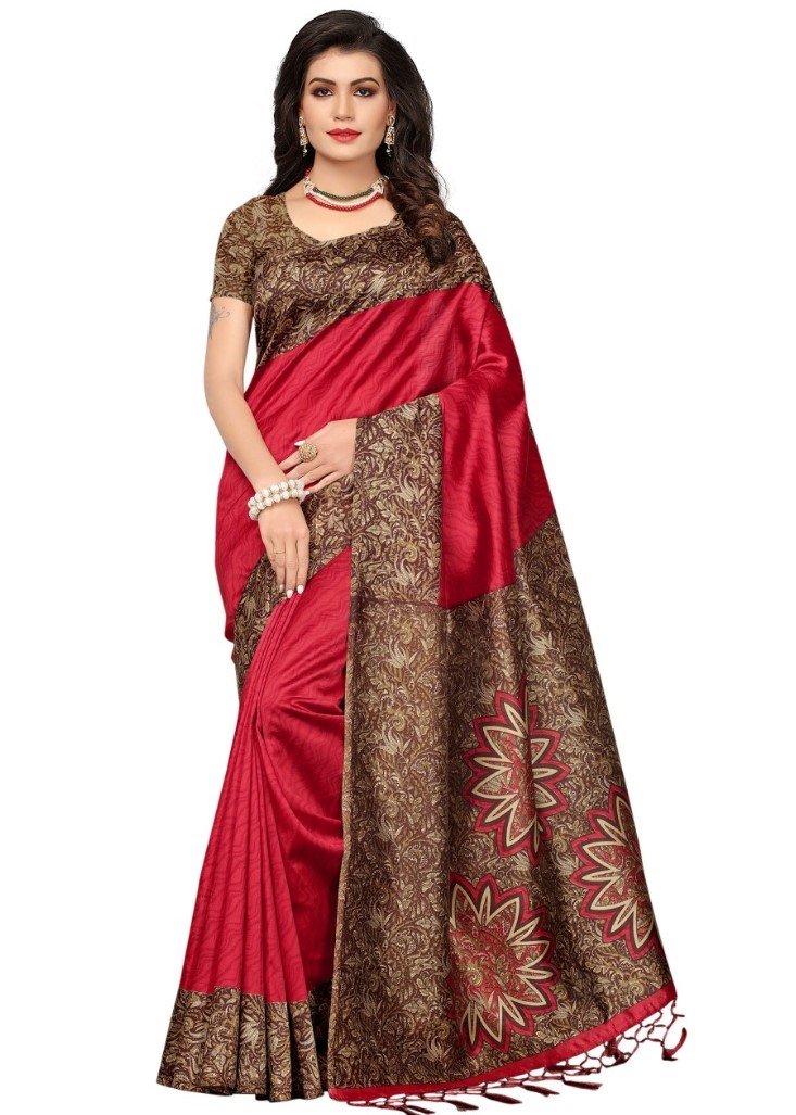 Generic Women’s Mysore Silk Printed Saree With Blouse (Red, 5-6 Mtrs)