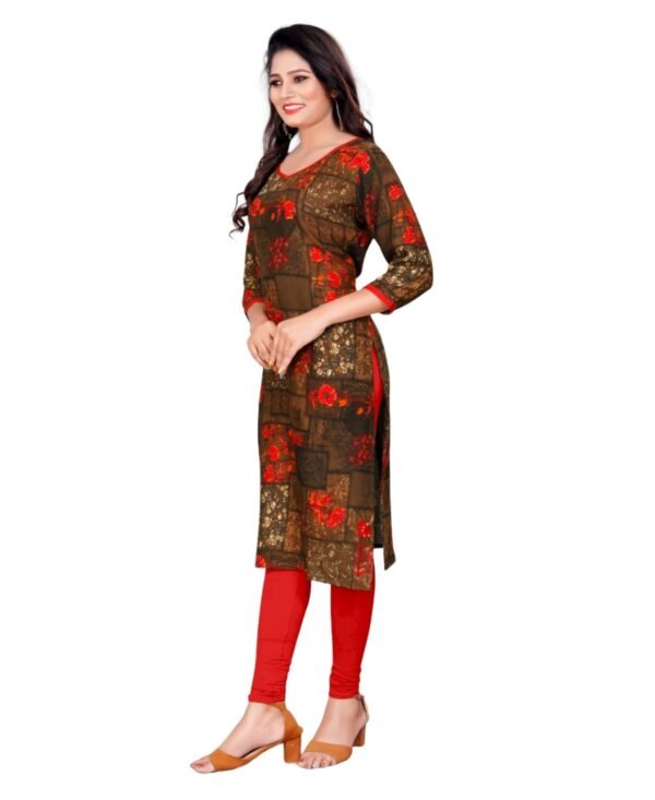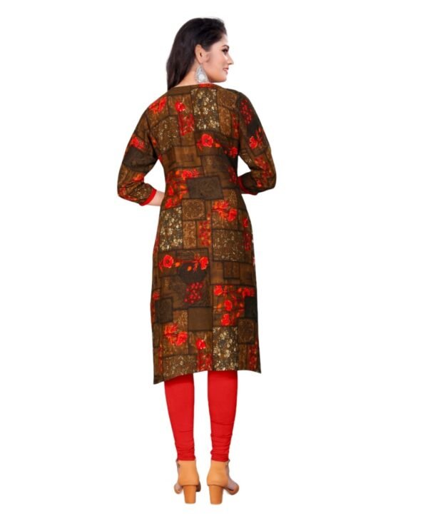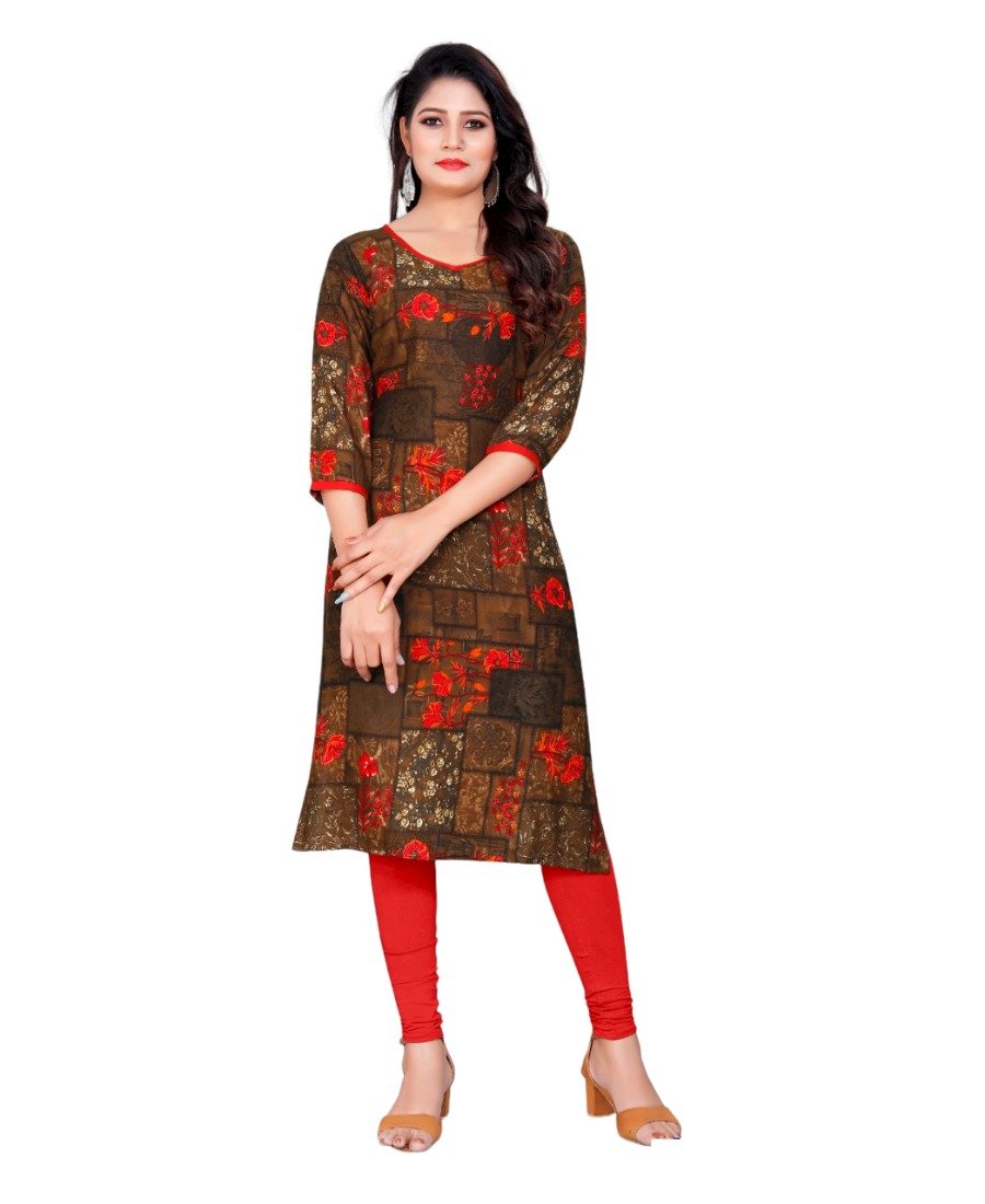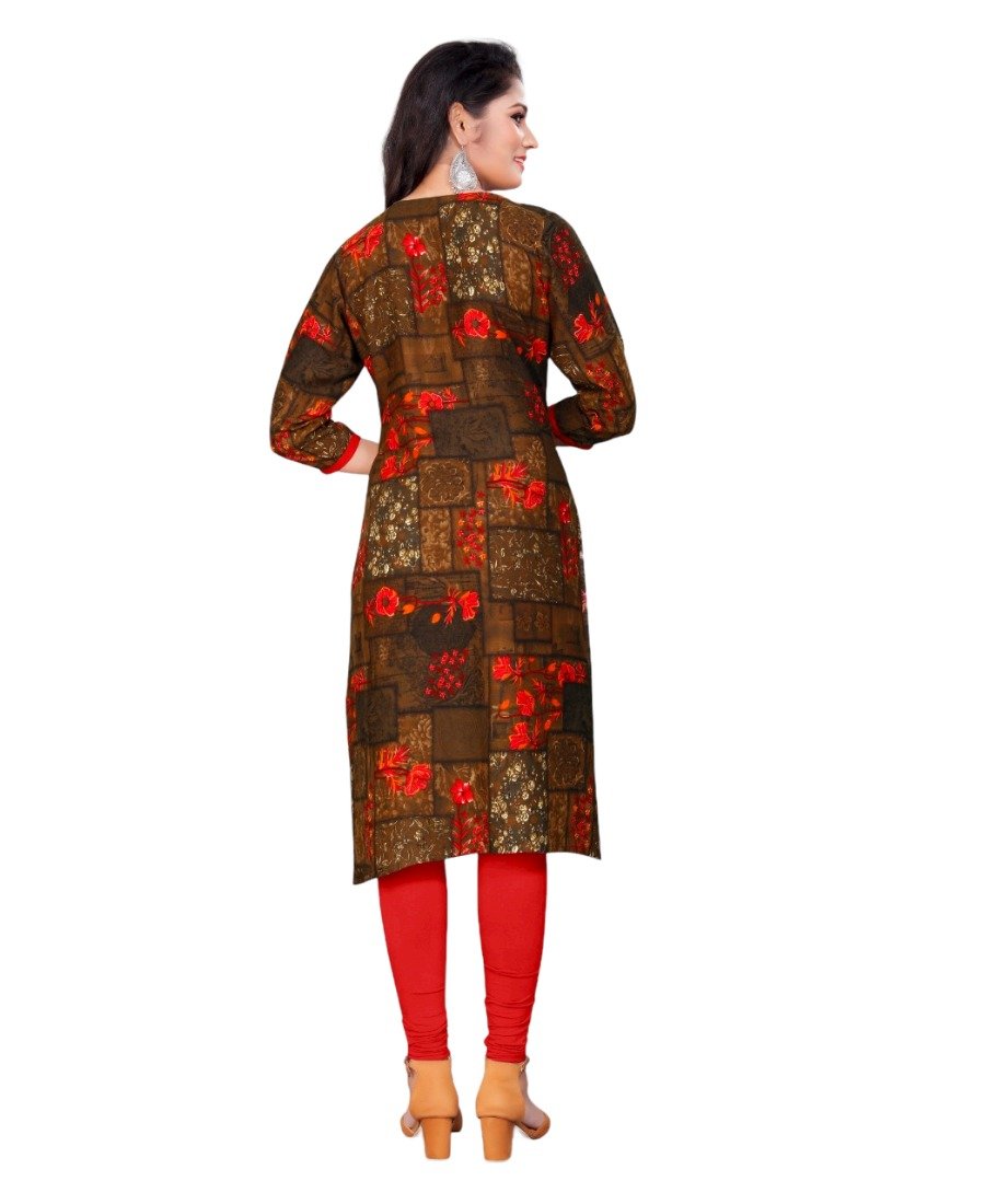 Women’s Rayon Foil Printed Straight Kurti (Brown)