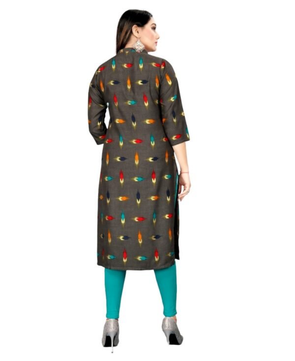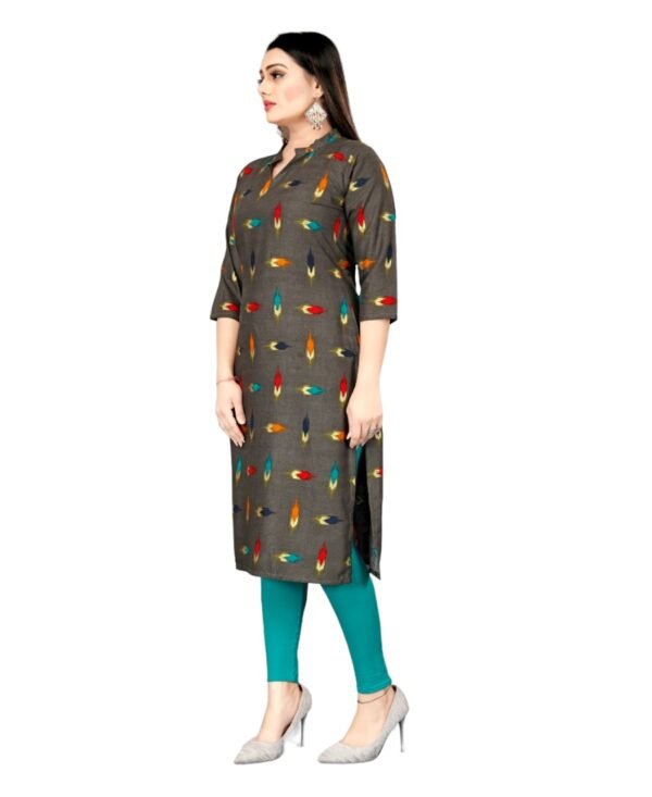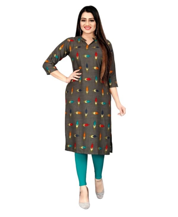 Generic Women’s Rayon Foil Printed Straight Kurti (MehandhiGreen)