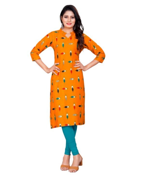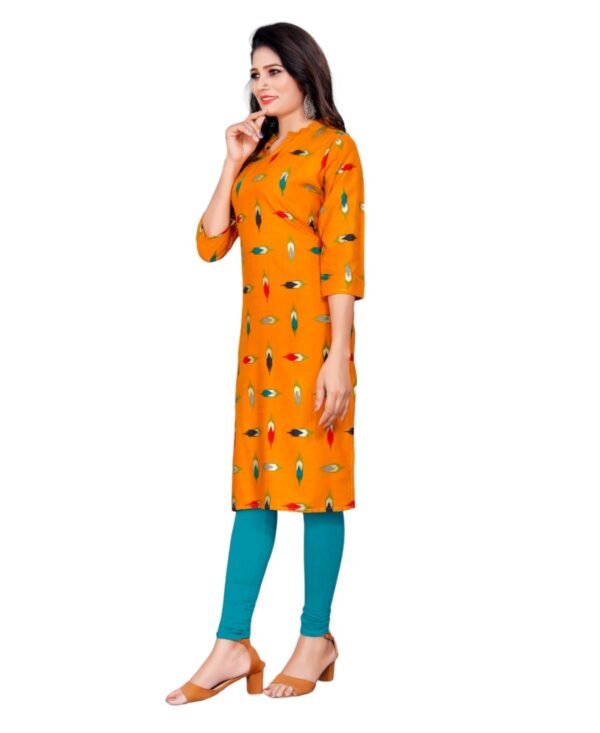 Women’s Rayon Foil Printed Straight Kurti (MustardYellow)