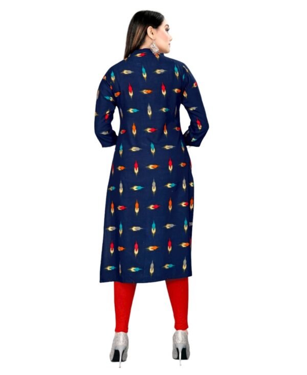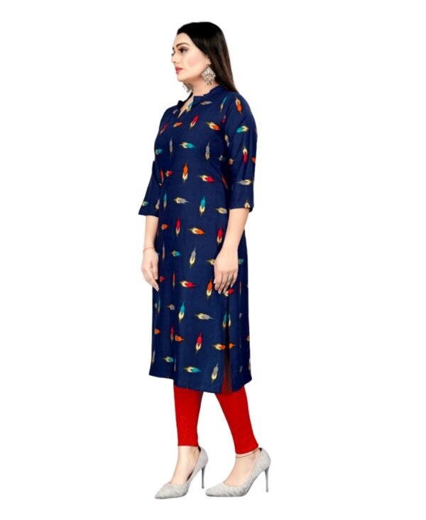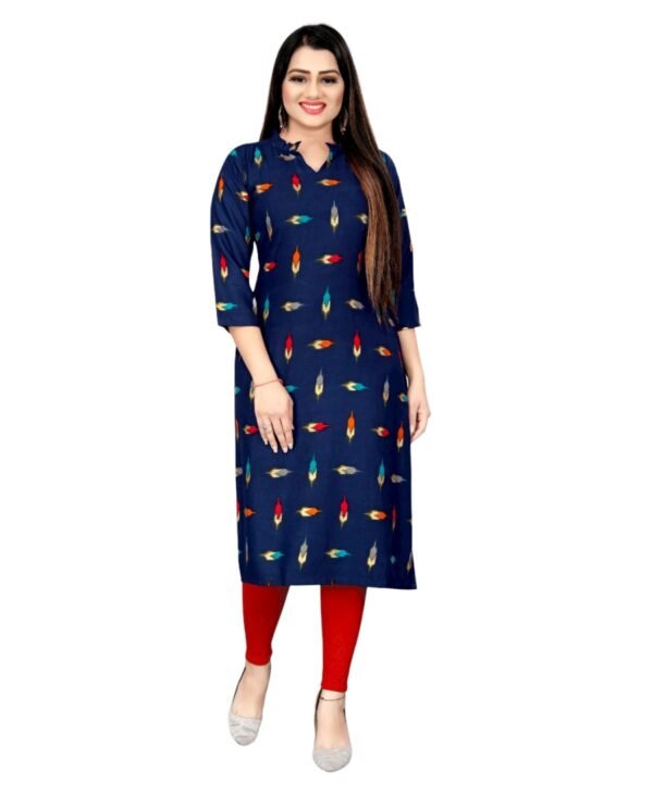 Women’s Rayon Foil Printed Straight Kurti (Navy Blue)