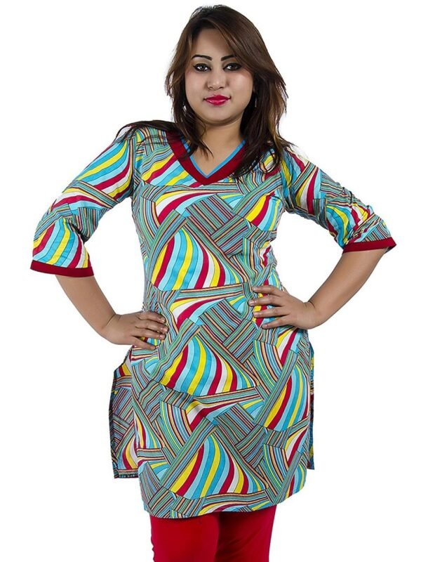 Generic Women’s Rayon Kurtis (Red, Multi, S)