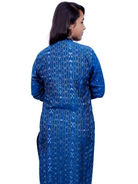 Generic Women’s Sambalpuri Certified Handloom Cotton A-Line Kurti (Blue)