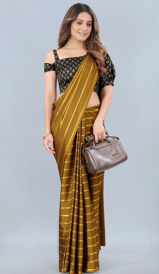 Generic Women’s Satin Silk Saree with Blouse (Mustard, 5-6 Mtrs)