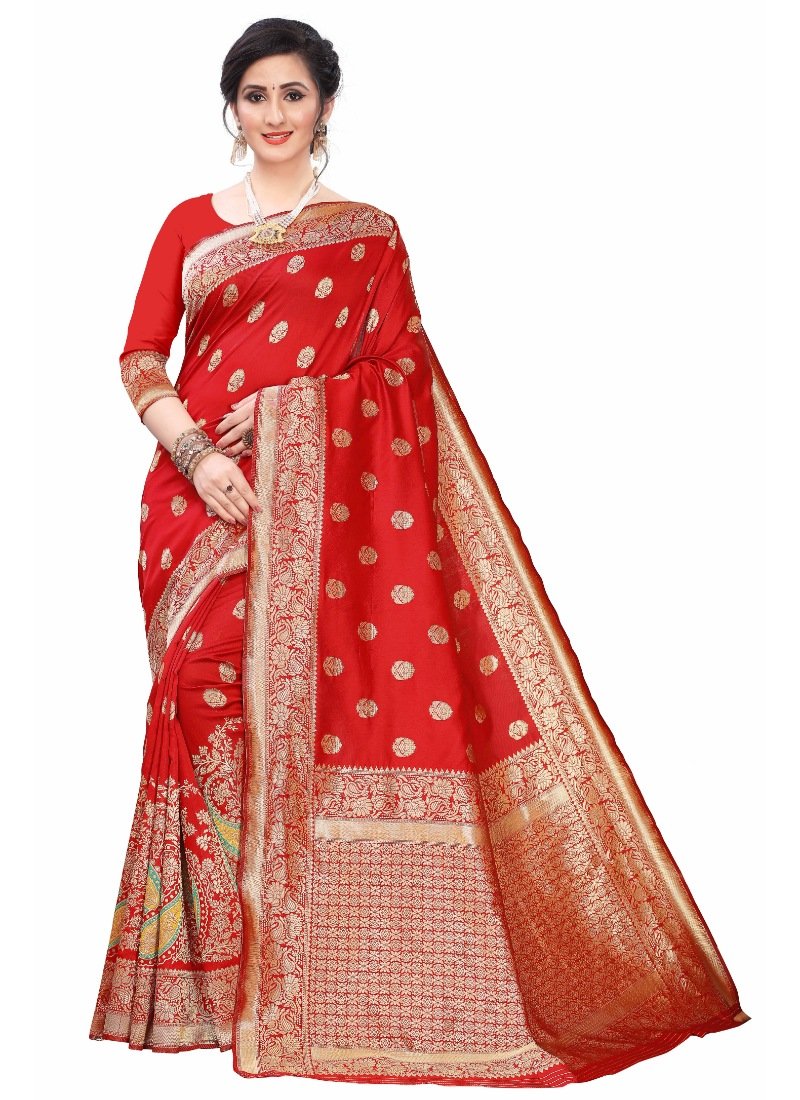Generic Women’s Silk Blend Saree (Red ,5-6Mtrs)