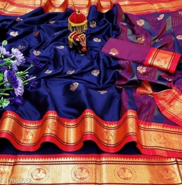 Women’s Soft Cotton Peocock Motif Printed Sarees