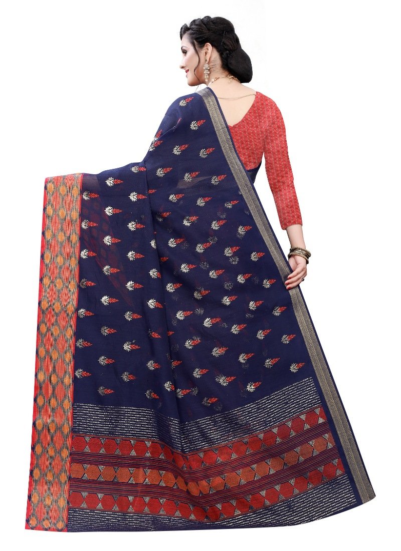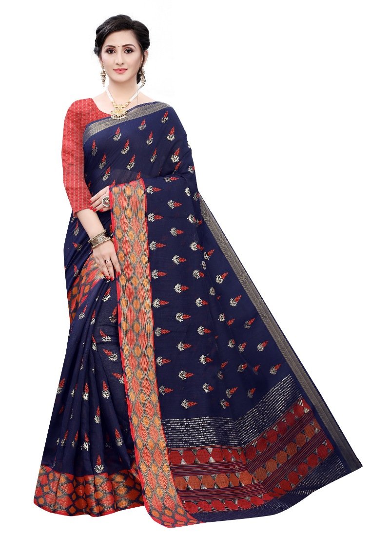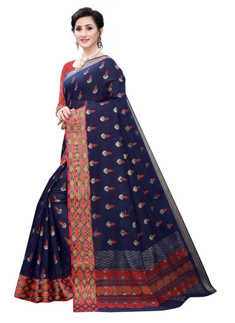 Generic Women’s Soft Cotton Silk Saree(Navy Blue ,5-6Mtrs)