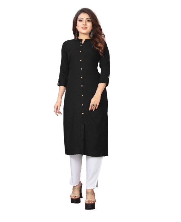 Generic Women’s Solid Rayon Roll Up 3/4th Sleeve Knee Length Kurti (Black)