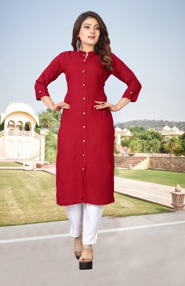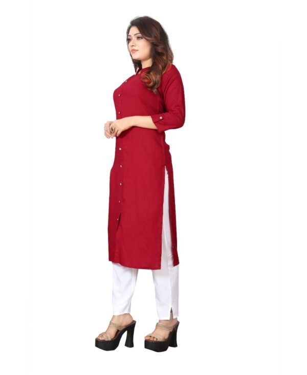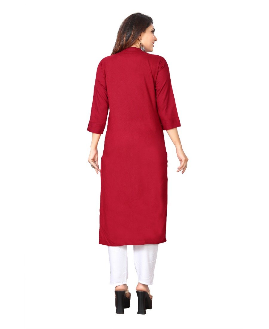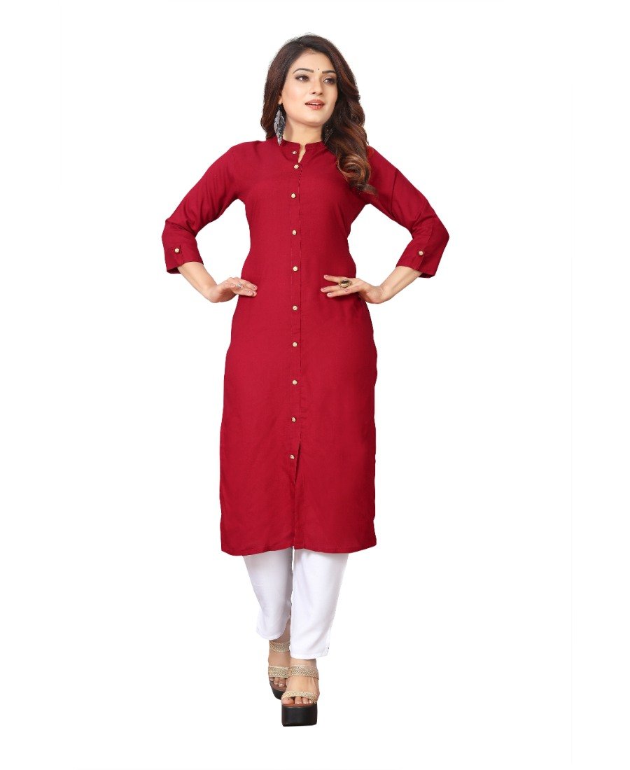 Generic Women’s Solid Rayon Roll Up 3/4th Sleeve Knee Length Kurti (Maroon)