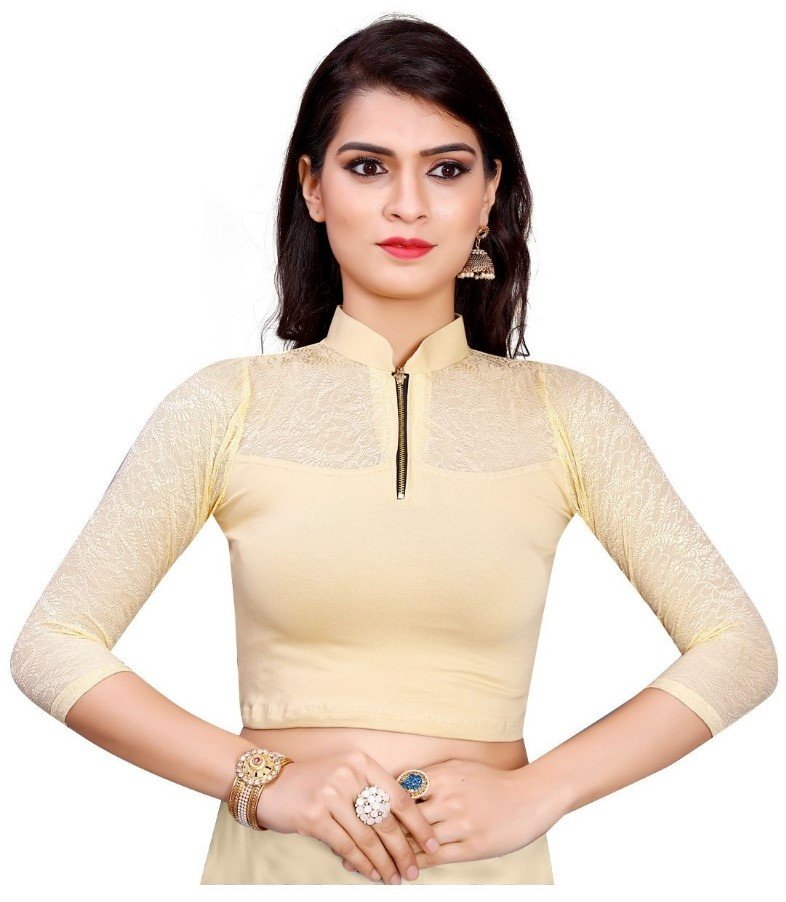 Generic Women’s Stretchable Readymade Blouse Cotton Lycra (Size-Free Size ,Neck Type-Collar)